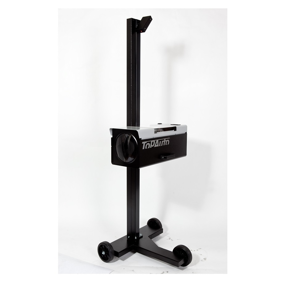 - Позиционирование прибора относительно транспорта осуществляется при помощи лазерного визира, зафиксированного в верхней части неподвижной стойки и лазерной системы центровки фары.