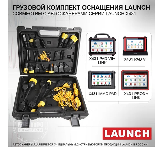 Грузовой комплект кабелей и по для сканеров x431 с адаптерами smartlink и smart box launch lnc-100 характеристики