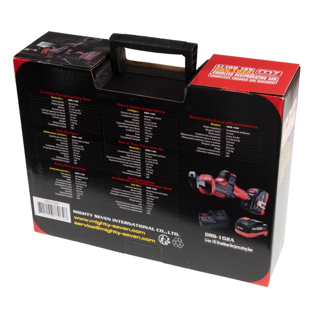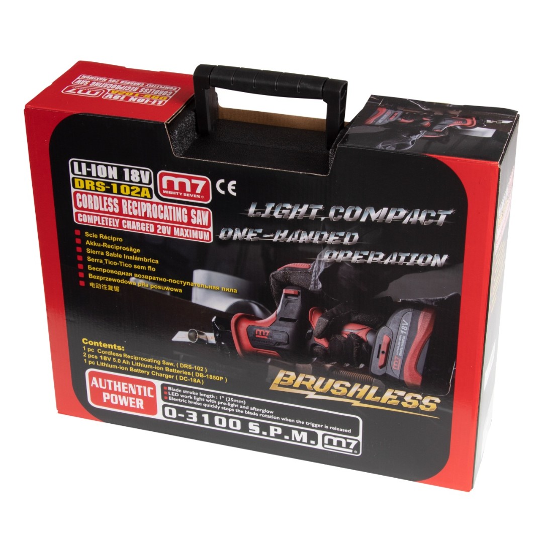 Пила сабельная аккумуляторная 18 в, 4 предмета, кейс mighty seven drs-102a