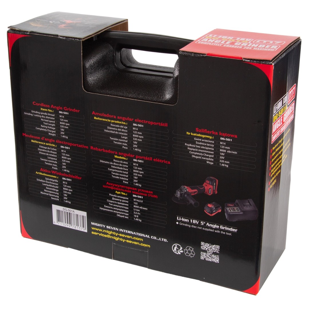 Шлифмашина угловая (ушм), 125 мм, 18 в, аккумуляторная, кейс mighty seven dg-501a