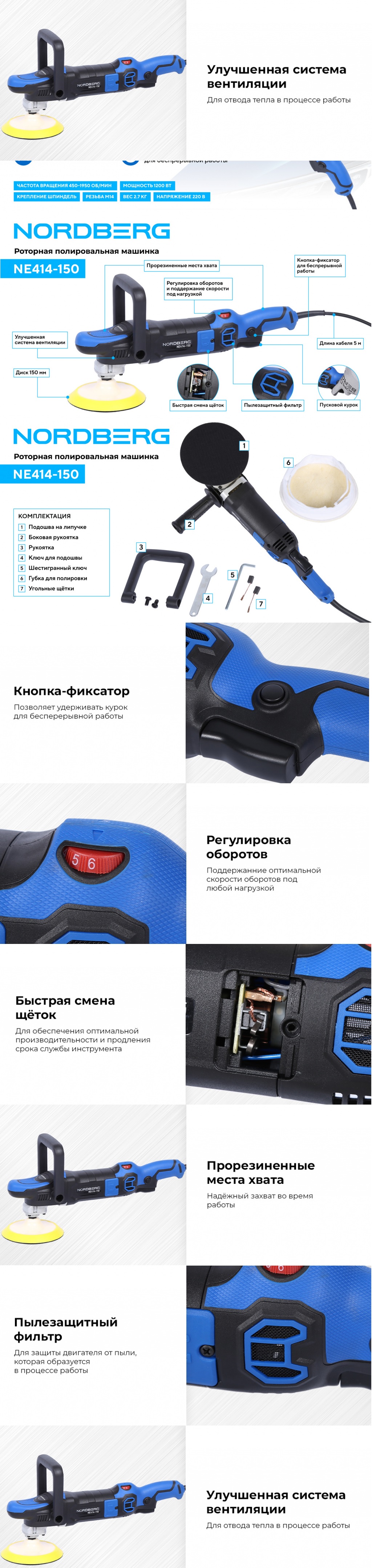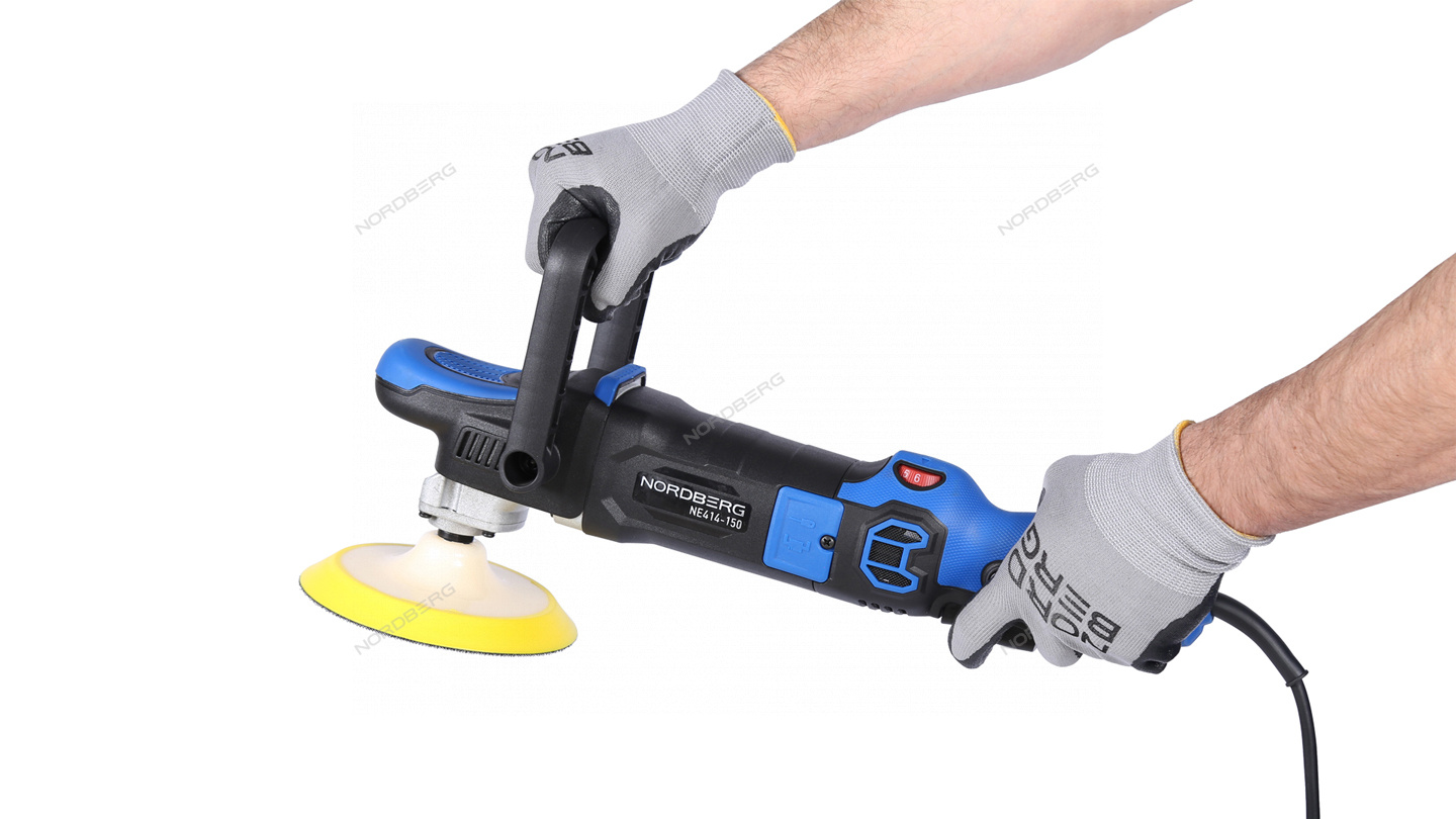 Полировальная машинка NORDBERG NE414-150 – электрический инструмент для выполнения профессиональных работ в автосервисах, студиях детейлинга и других предприятиях, занимающихся покраской.