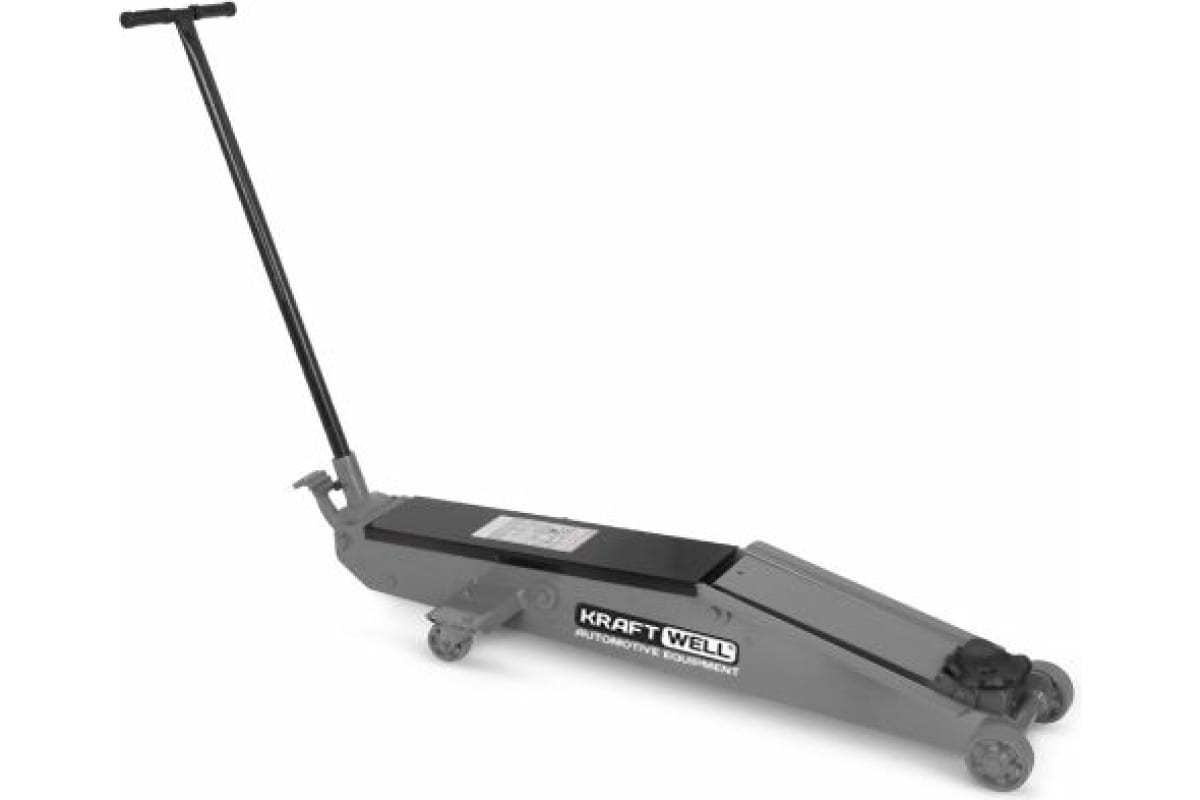 Подкатной домкрат KRAFTWELL, модель KRWFJ5 с удлиненной конструкцией и грузоподъемностью 5000 кг позволяют поднимать малотоннажные и среднетоннажные грузовики. Для быстрого подвода опорной площадки к кузову автомобиля используется педаль. Плавное опускание автомобиля обеспечивается карданным механизмом привода запорного клапана. В гидравлической схеме предусмотрен клапан защиты от перегрузки для предотвращения выхода насоса из строя, в случае приложения нагрузки, превышающей номинальную грузоподъемность. Конструкция домкрата спроектирована таким образом, чтобы обеспечить максимальную устойчивость и маневренность на любой твердой поверхности.