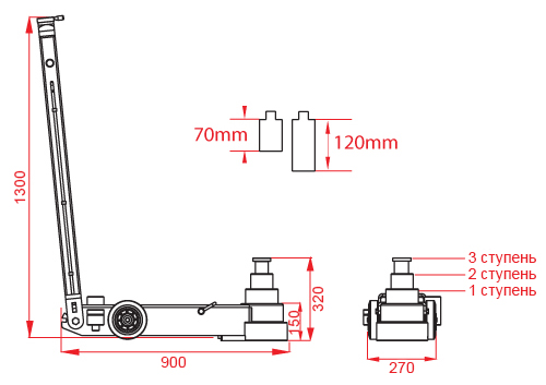 Домкрат пневмогидравлический г/п 45/30/15 т. KraftWell KRWAJ45-3T характеристики