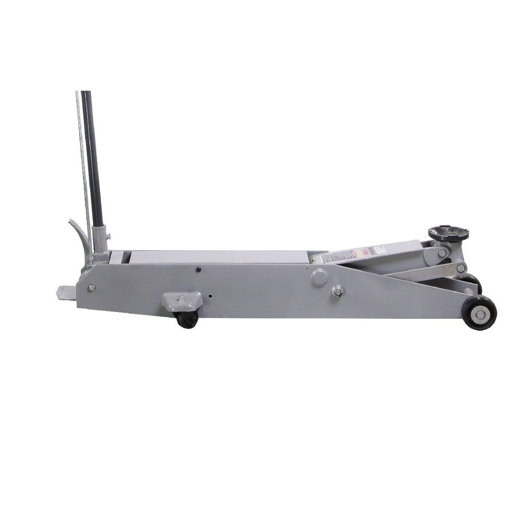 Подкатной домкрат KRAFTWELL, модель KRWFJ5 с удлиненной конструкцией и грузоподъемностью 5000 кг позволяют поднимать малотоннажные и среднетоннажные грузовики. Для быстрого подвода опорной площадки к кузову автомобиля используется педаль. Плавное опускание автомобиля обеспечивается карданным механизмом привода запорного клапана. В гидравлической схеме предусмотрен клапан защиты от перегрузки для предотвращения выхода насоса из строя, в случае приложения нагрузки, превышающей номинальную грузоподъемность. Конструкция домкрата спроектирована таким образом, чтобы обеспечить максимальную устойчивость и маневренность на любой твердой поверхности.