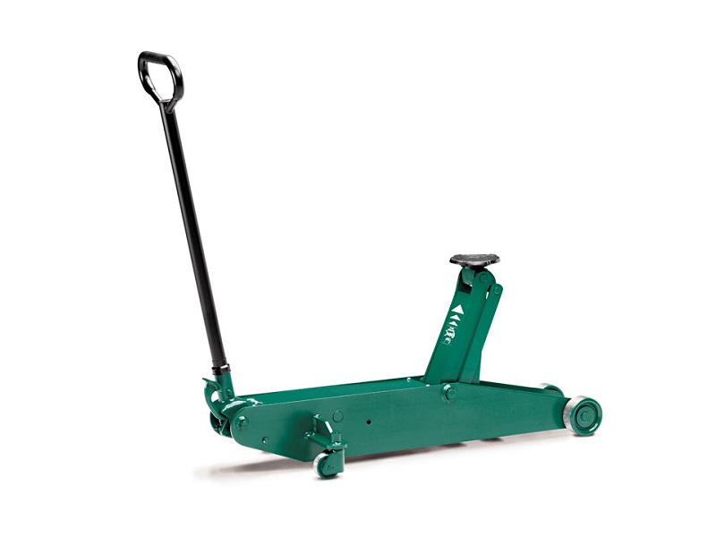 Длинная удобная ручка позволяет без особых трудозатрат установить домкрат в любое место под автомобилем, а педаль за минимальное время поднимет опорную площадку под авто.