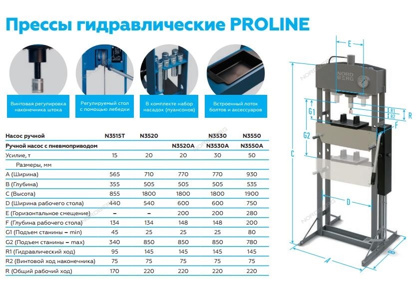 Пресс пневмогидравлический, напольный, 50т. NORDBERG PRO N3550A характеристики