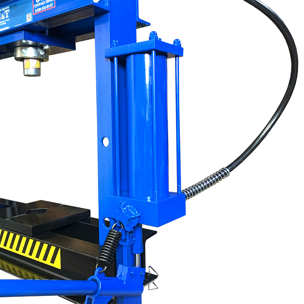 Данная модель рассчитана на эксплуатацию в сервисах и СТО любого уровня с большим запасом возможностей: цилиндр легко можно смещать вдоль рамы, предусмотрен возвратный механизм пружинного типа, платформу несложно переместить вверх или вниз в очень большом диапазоне, сборная конструкция позволяет легко перевезти или хранить изделие. Также T61212F оснащён ножным приводом для уменьшения нагрузки на оператора.