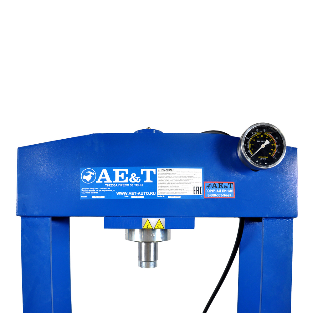 Данный пресс отлично сочетает в себе преимущества пневматических и ручных за счёт того, что в нём есть и пневмопривод, и рукоять для накачки цилиндра. Это упрощает применение в ситуациях, когда нет доступа к электроэнергии. Внушительную мощность дополняет усиленная сварная рама, возможность передвигать цилиндр вдоль рамы, прочный рабочий стол, который можно перевешивать вверх или вниз на 880 мм и возвратный механизм. Опыт и положительная обратная связь клиентов показывают, что T61230A отлично подходит любым российским сервисам и станциям техобслуживания, когда необходимы сборка и разборка, запрессовка-выпрессовка подшипников, втулок, других запчастей.