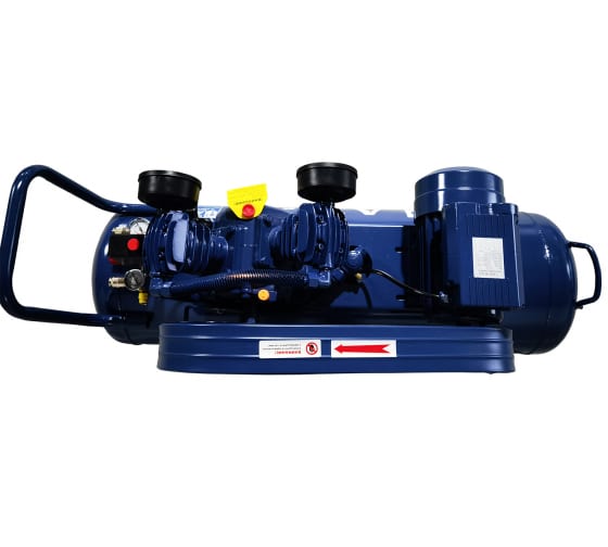 Компрессор оборудован ручкой и прочными резиновыми колесами, что облегчает процесс его транспортировки по рабочей площадке. Наличие двух манометров позволяет отслеживать давление в системе компрессор-инструмент для каждого пневмоинструмента в отдельности.