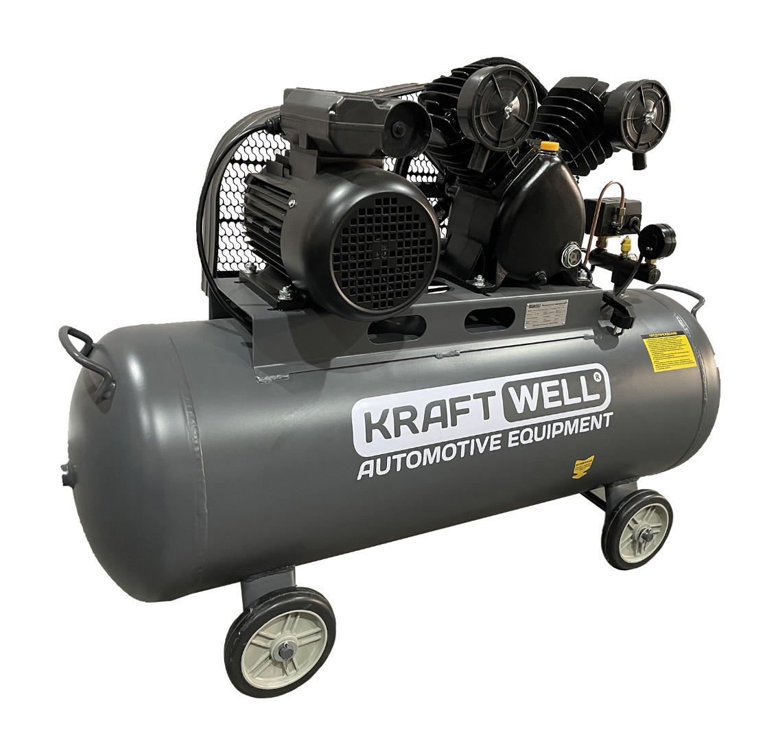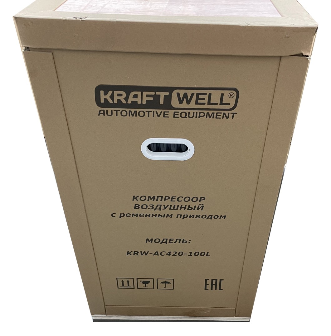 Компрессор поршневой 420 л/мин, 10 бар, 100 л, 220В KraftWell KRW-AC420-100L/220