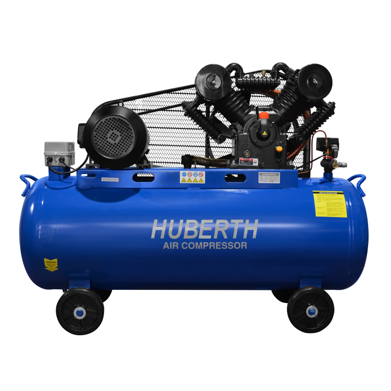 Поршневой воздушный компрессор Huberth с ремённым приводом оснащён 300-л ресивером горизонтального расположения и рассчитан на эксплуатацию на автостанциях, окрасочных и шиномонтажных мастерских, в промышленности и прочих сферах деятельности, где регулярно требуется применение сжатого воздуха.