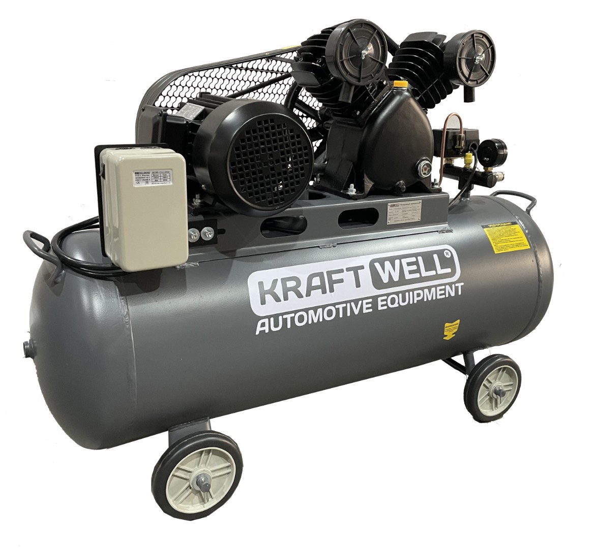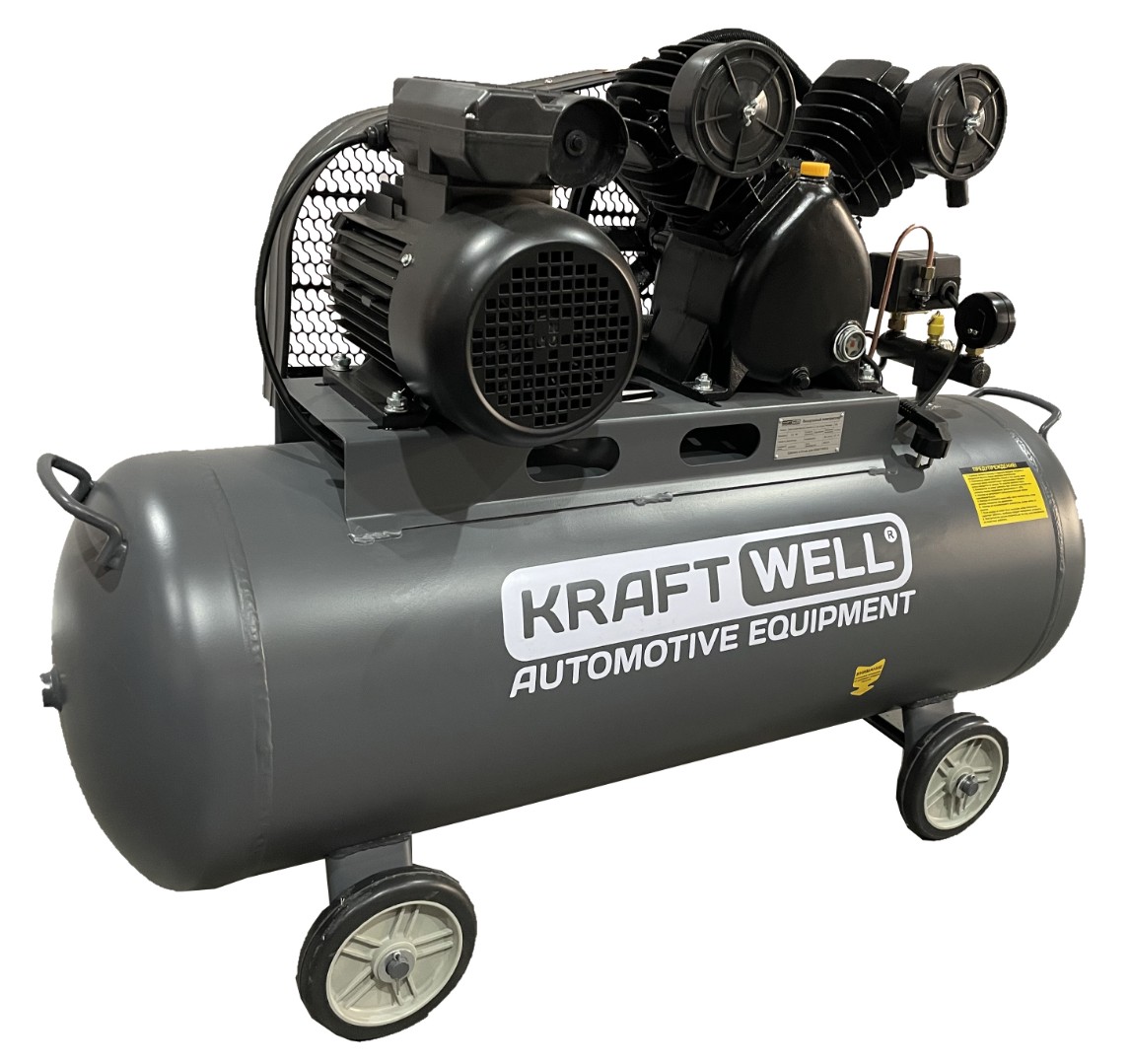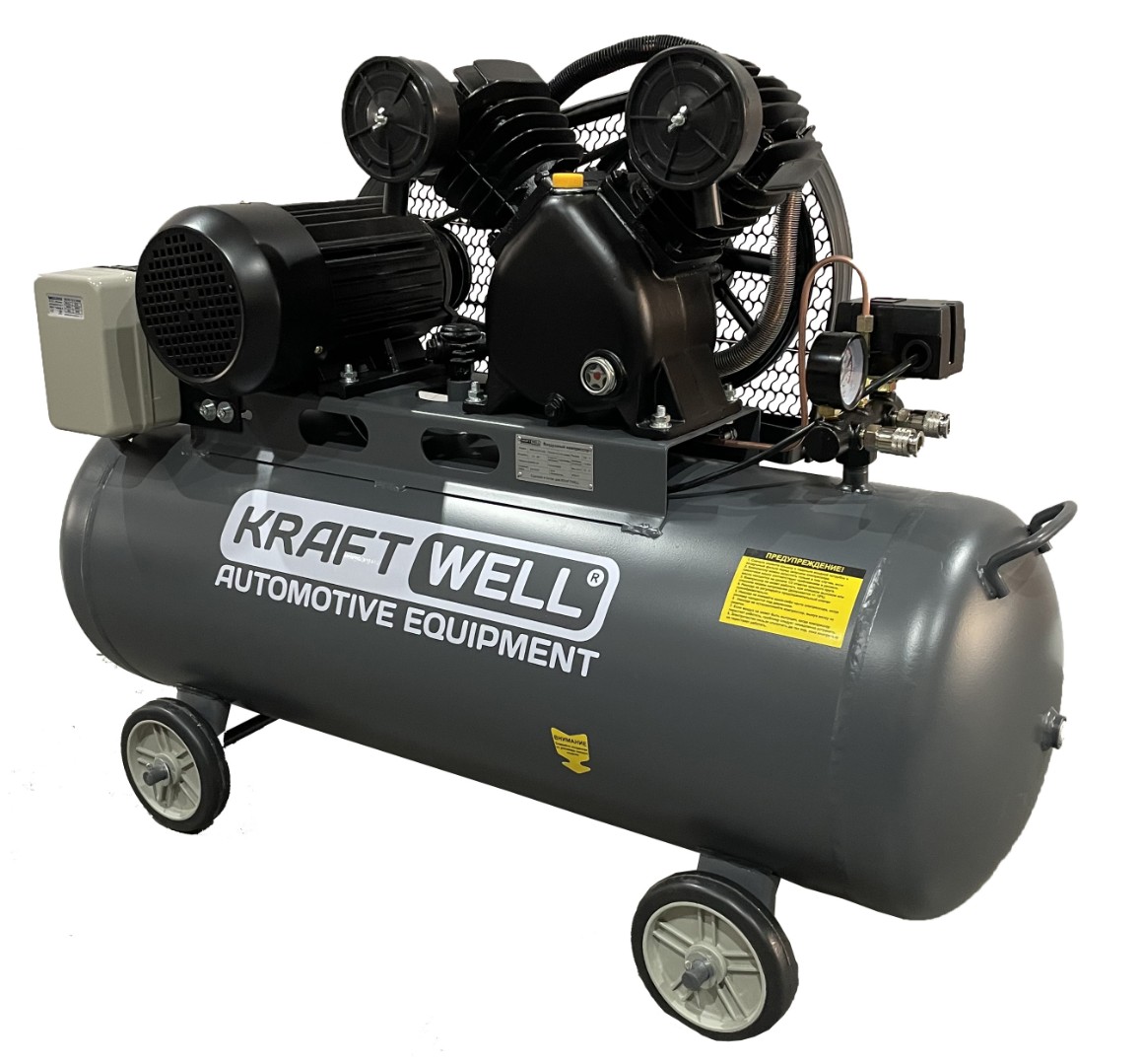 Компрессор поршневой 420 л/мин, 10 бар, 100 л, 380В KraftWell KRW-AC420-100L