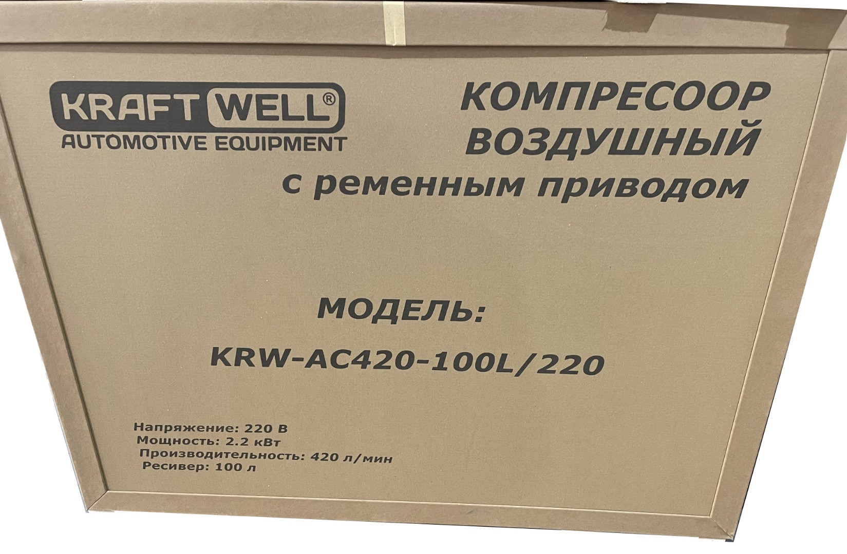 Компрессор поршневой 420 л/мин, 10 бар, 100 л, 380В KraftWell KRW-AC420-100L характеристики