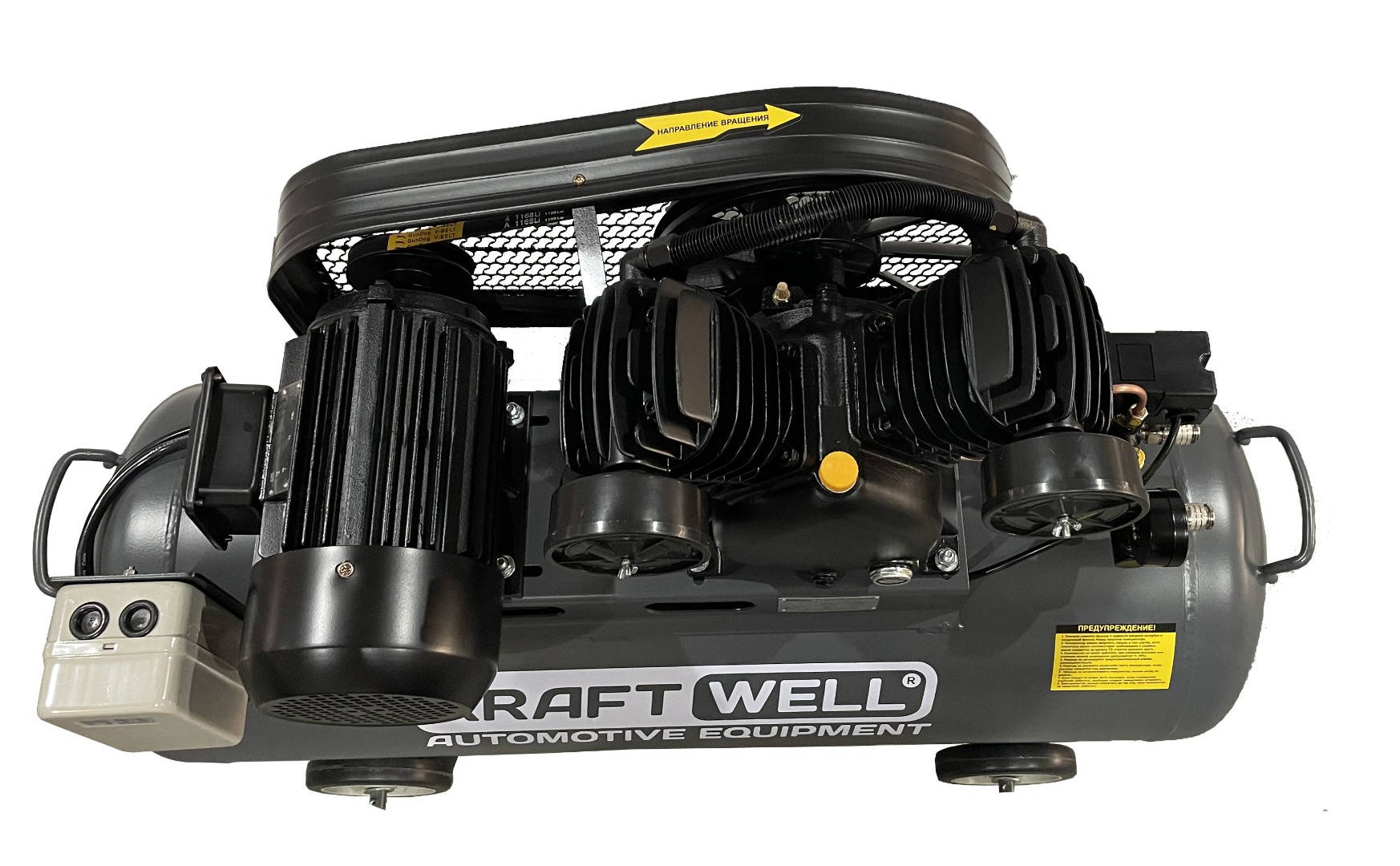 Поршневой компрессор с ременным приводом. Производительность 420 л/мин., давление на выходе 10 бар, ресивер 100 л., 2,2 кВт, 380В Характеристики: Производитель: KraftWell Страна производитель: Китай Тип привода: Ременной Давление, бар: 80 Тип двигателя: Электрический Количество оборотов, об/мин: 1050 Сеть, В: 380 Производительность до, л/мин: 420 Объем ресивера, л: 100 Тип смазки: Масляный Расположение ресивера: Горизонтальный Наличие манометра: Да Мобильность: Передвижной Уровень шума, дБ: 90 Применение: Для автосервиса , Для гаража , Для покраски , Для строительных работ Мощность, кВт: 2,2 Гарантия, мес: 12 Длина, мм: 1140 Ширина, мм: 465 Высота, мм: 840 Масса, кг: 77