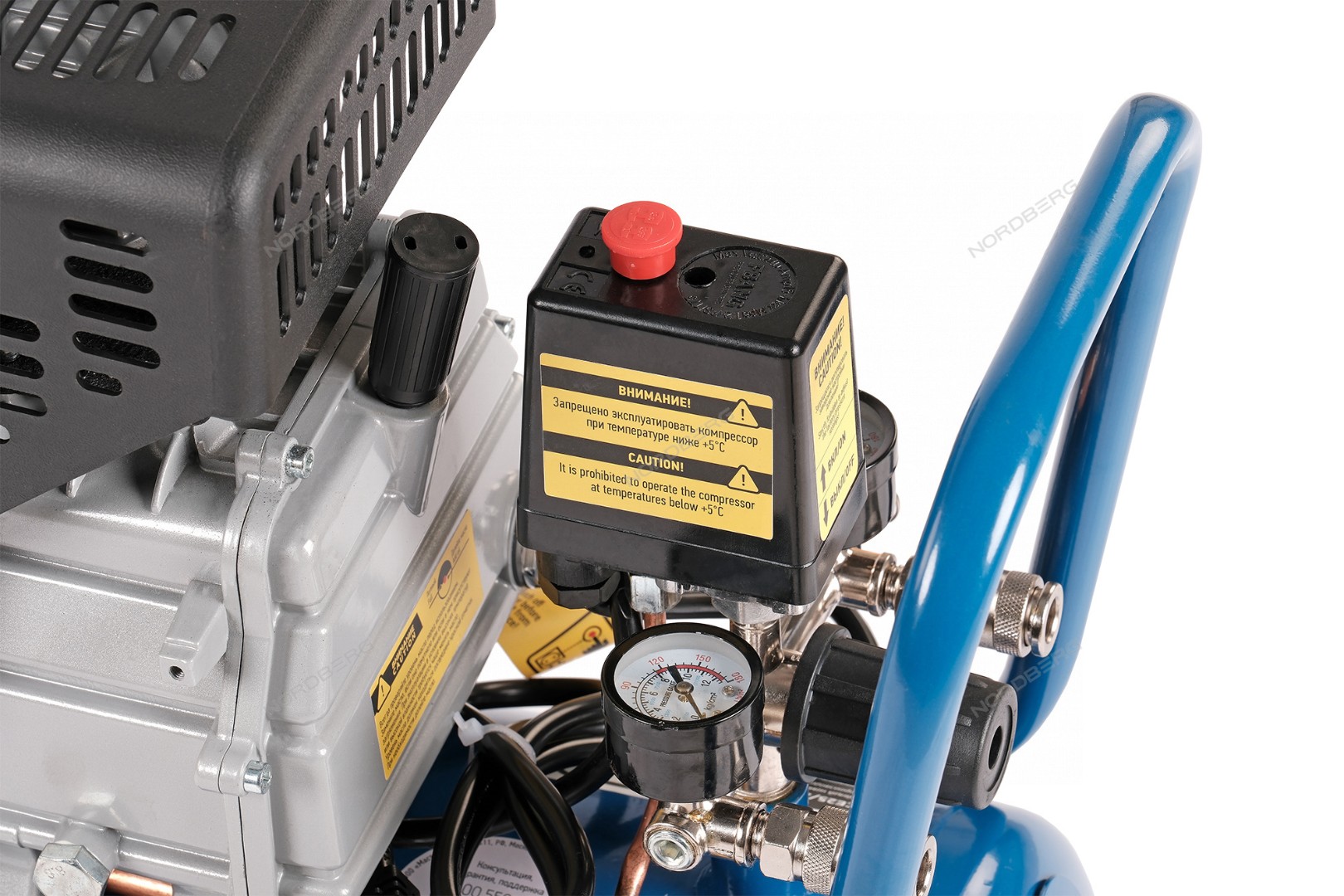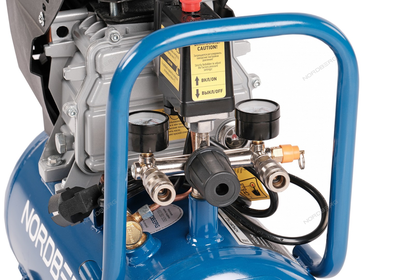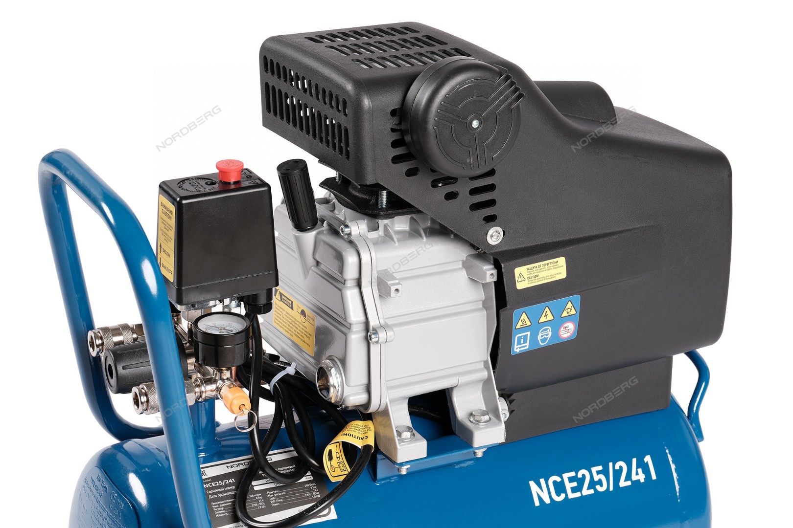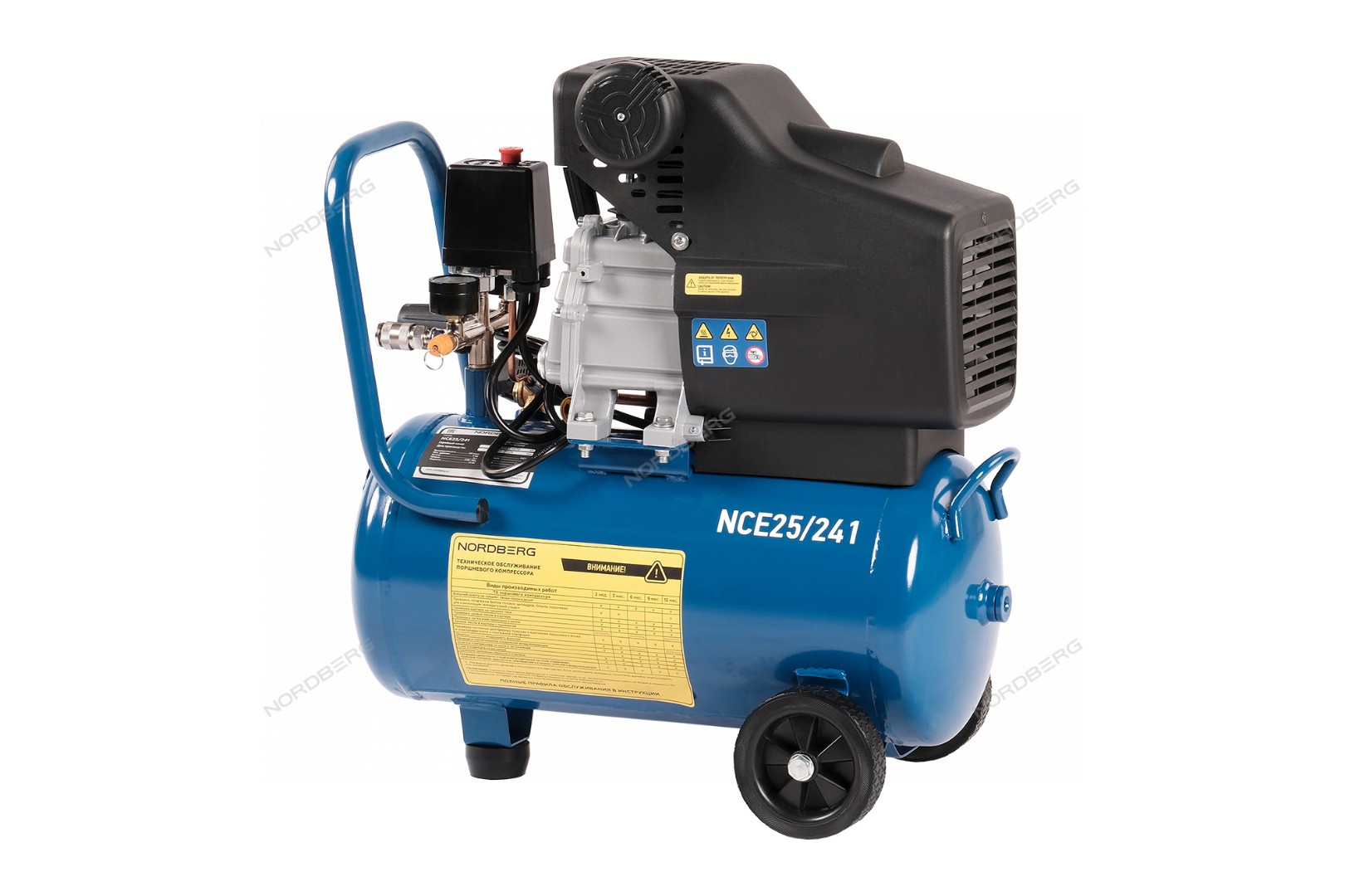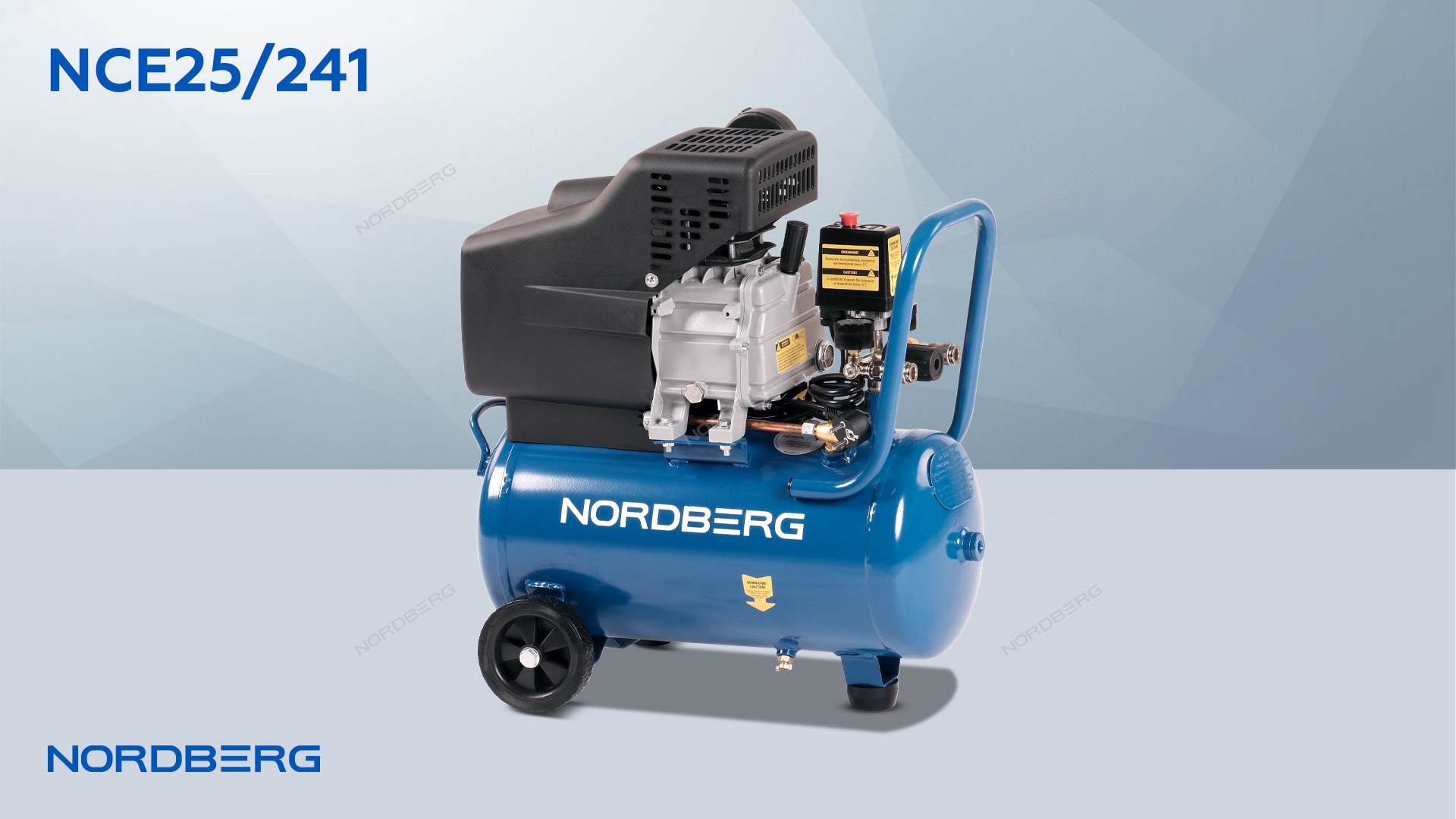 Поршневой компрессор с ресивером NORDBERG NCE25/241 – промышленное оборудование для применения с пневмоинструментами в автосервисных мастерских и для использования в бытовых целях.