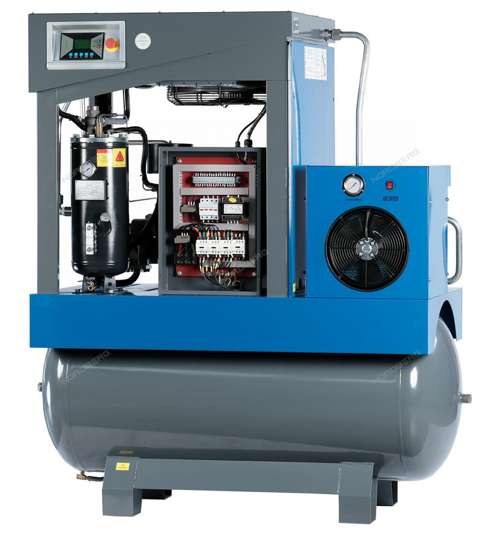 Компрессор винтовой, 11кВт, 10Бар, 1450л/мин, ресивер 500л, осушитель NORDBERG NCA15RD