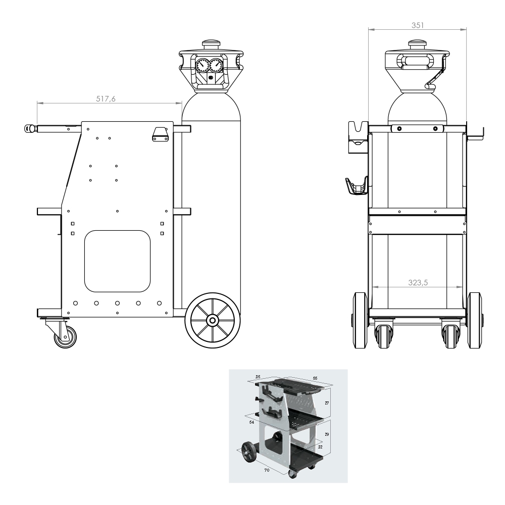 - В комплекте поставки нейлоновый ремень длиной 2.5 м для фиксации сварочного аппарата на тележке