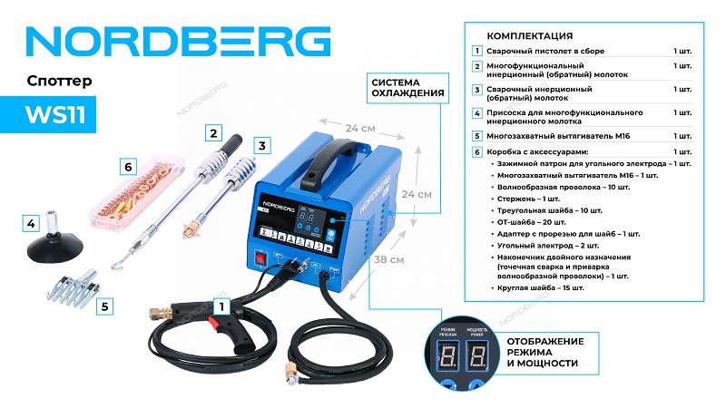 Аппарат сварочный, споттер, 220 В Nordberg WS11 характеристики