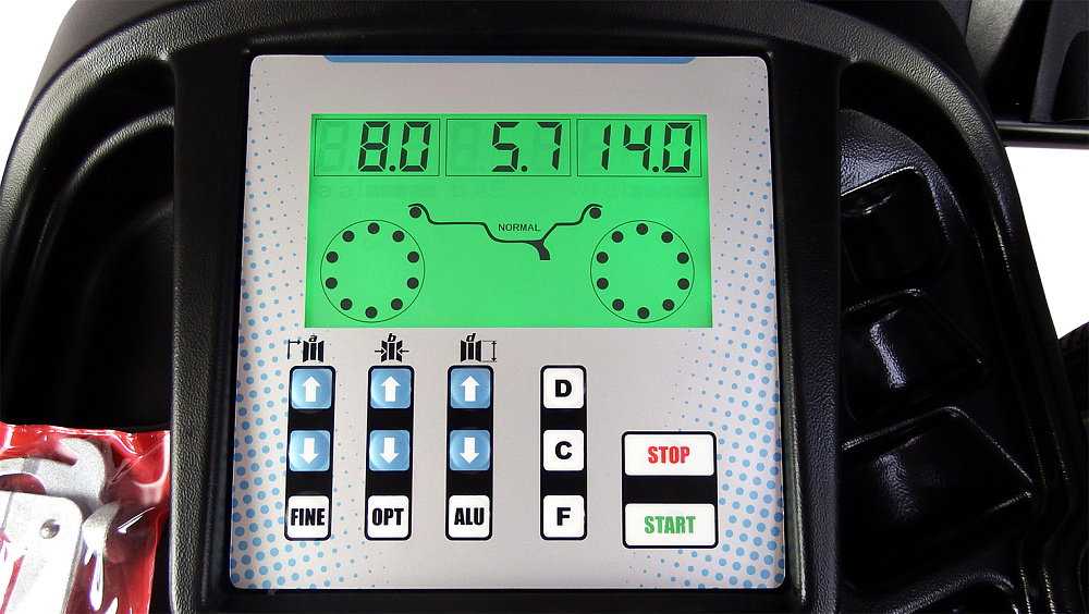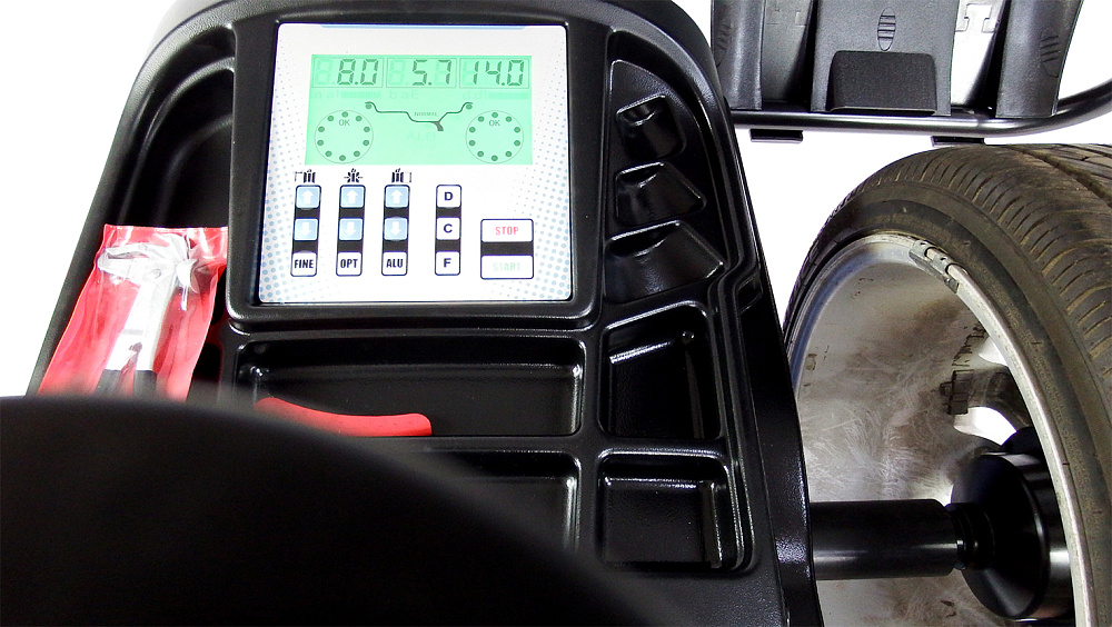 - Панель управления с цифровым дисплеем и светодиодным экраном, отображающим места расположения балансировочных грузов (без LCD монитора).