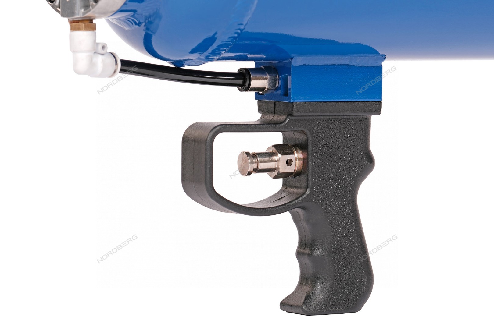 - Удобная рукоятка со стартовой кнопкой и автоматический выпускной клапан обеспечивают безопасность удерживания изделия и быстрый выход большого объема сжатого воздуха.