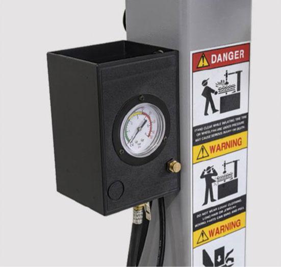 Манометр контроля давления воздуха смонтирован на монтажной стойке. Накачка - нажатием ногой на педаль.