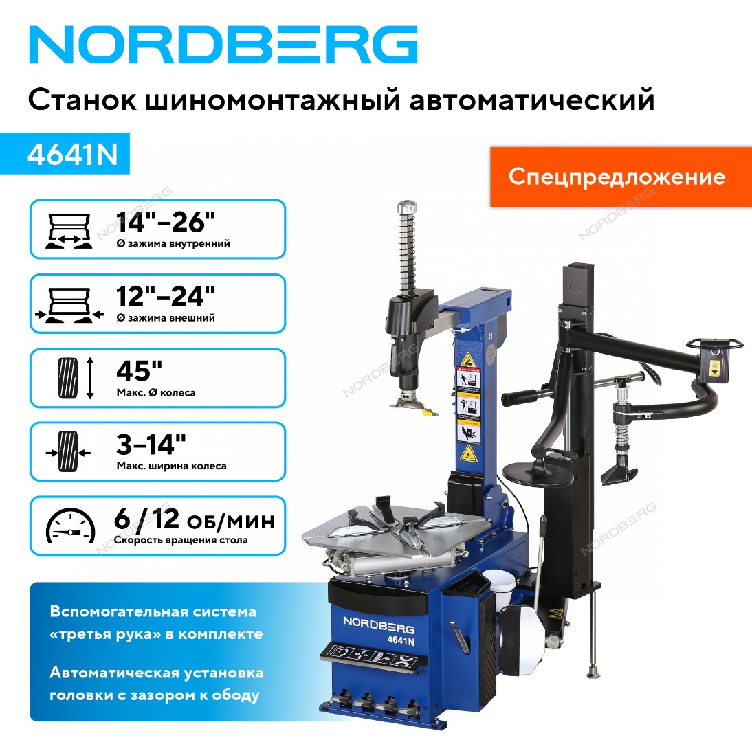 Станок шиномонтажный автомат с третья рукой Nordberg 4641N характеристики