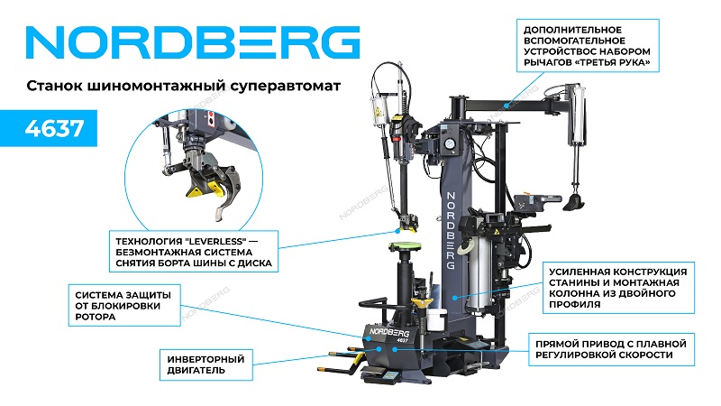 Шиномонтажный станок суперавтомат NORDBERG 4637 - профессиональное оборудование для шиномонтажных мастерских, автосервисов, СТО.