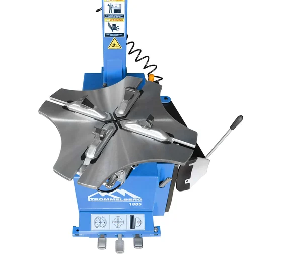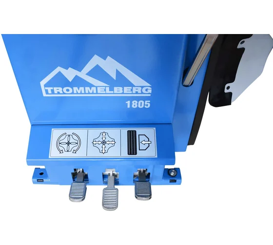 Полуавтоматический шиномонтажный станок Trommelberg 1805B для обслуживания колес со стальными / алюминиевыми дисками наиболее распространённых диаметров.