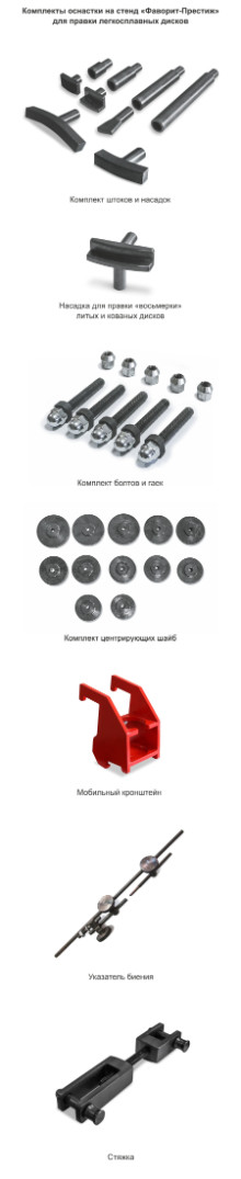 Стенд для правки дисков «Фаворит-Престиж» предназначен для правки особо сложных повреждений литых и кованых легкосплавных дисков, а также для правки «восьмерки» и спиц дисков от 10 до 26 дюймов включительно (от 22-х дюймов используйте мобильный кронштейн). Рама изготовлена с допустимыми нагрузками до 12 тонн. Вал изготовлен из высоколегированной конструкционной стали с повышенной износостойкостью и прочностью. Стенд оснащен запатентованными специальными болтами для крепления дисков и усиленной планшайбой. Добавлен электрический привод вращения шпинделя, предназначенный для облегчения поиска зоны правки диска, что, безусловно, повышает производительность труда и качество работ.