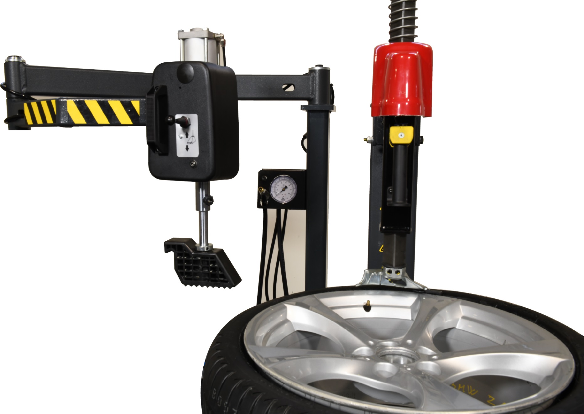 Облегчает сборку и разборку низкопрофильных шин. Устройство монтируется слева и подключается к пневмостеме станка.