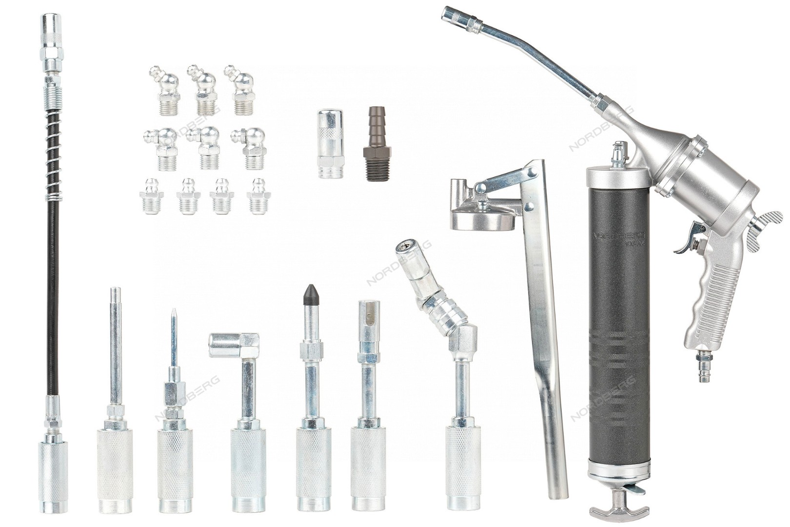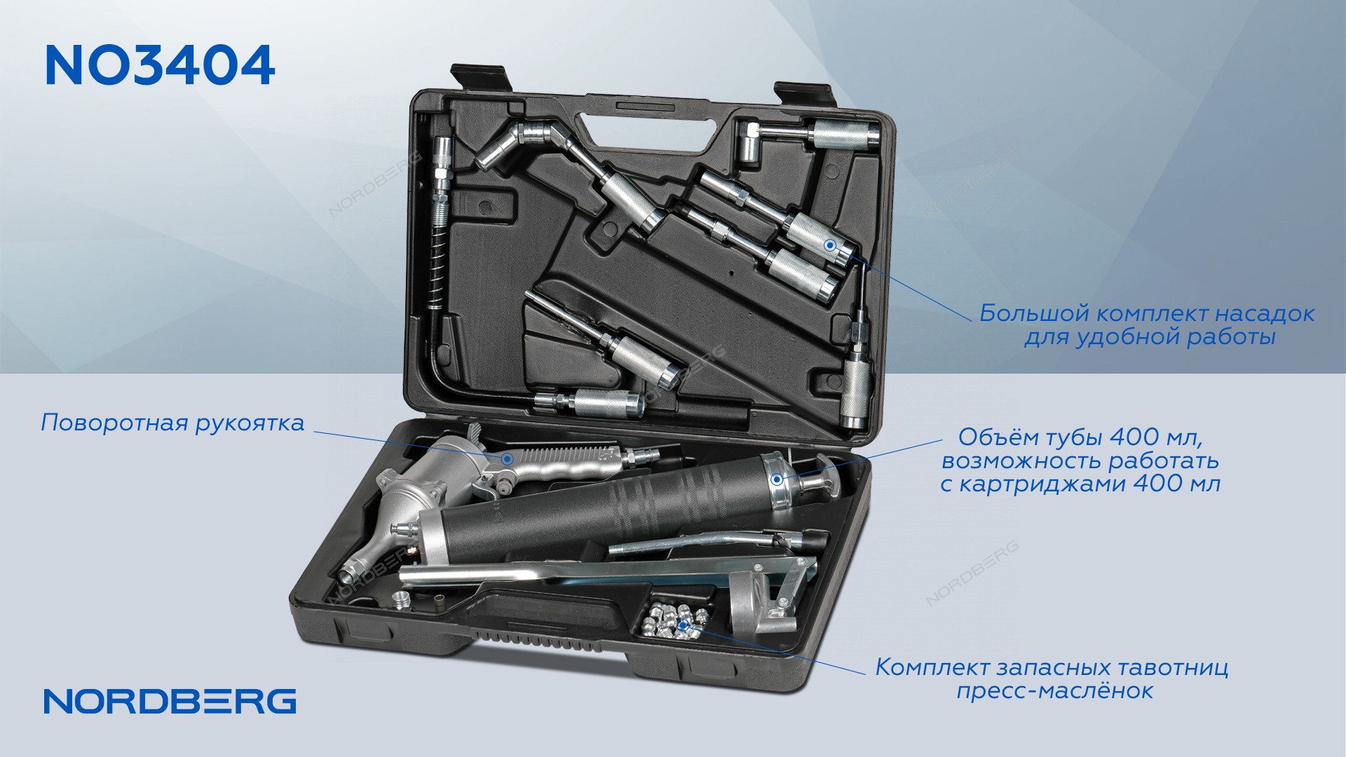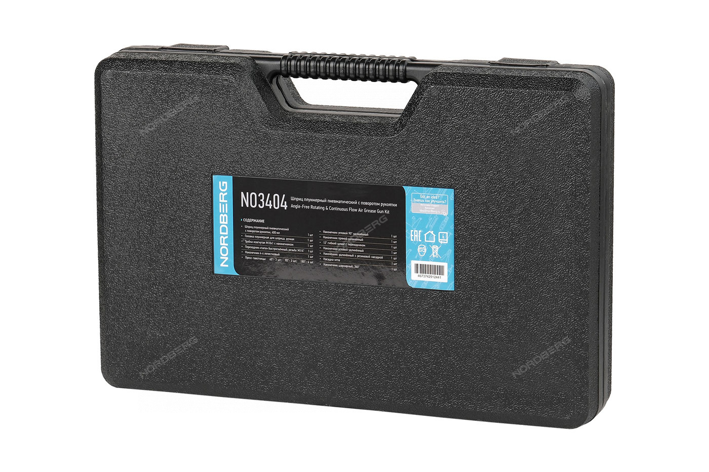 Шприц плунжерный пневматический с поворотом рукоятки, 400 мл, с насадками в кейсе Nordberg NO3404 характеристики