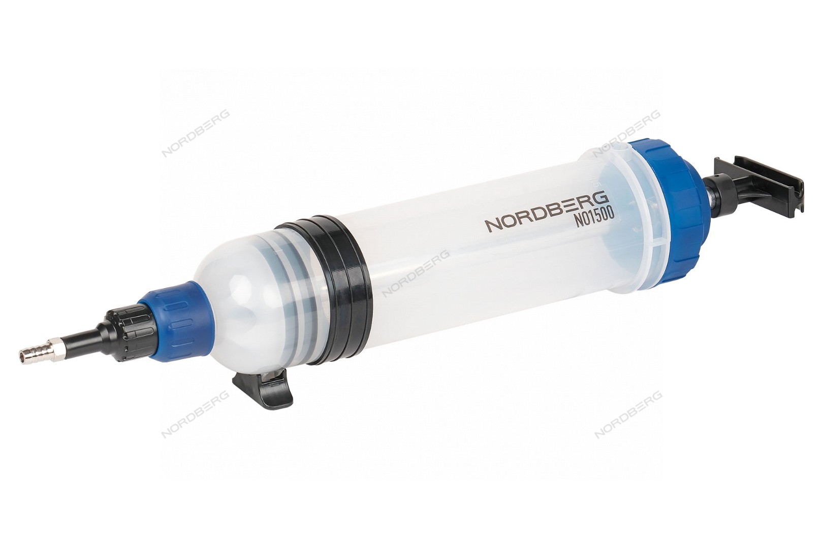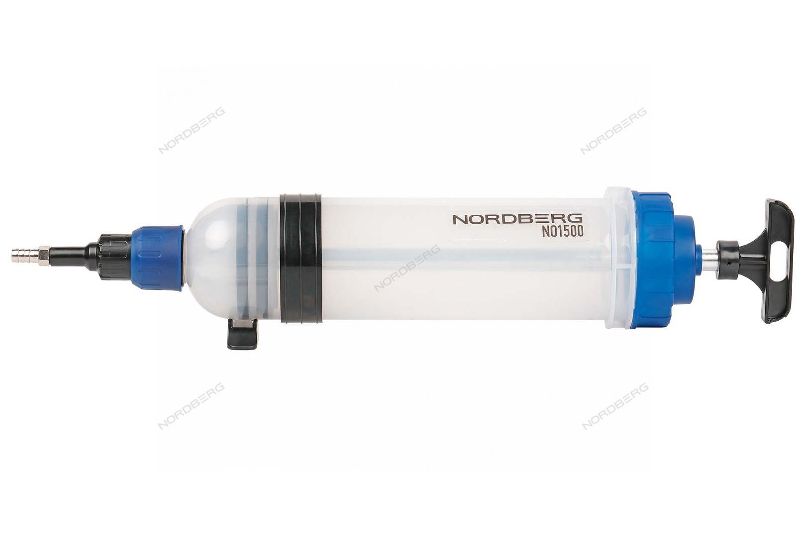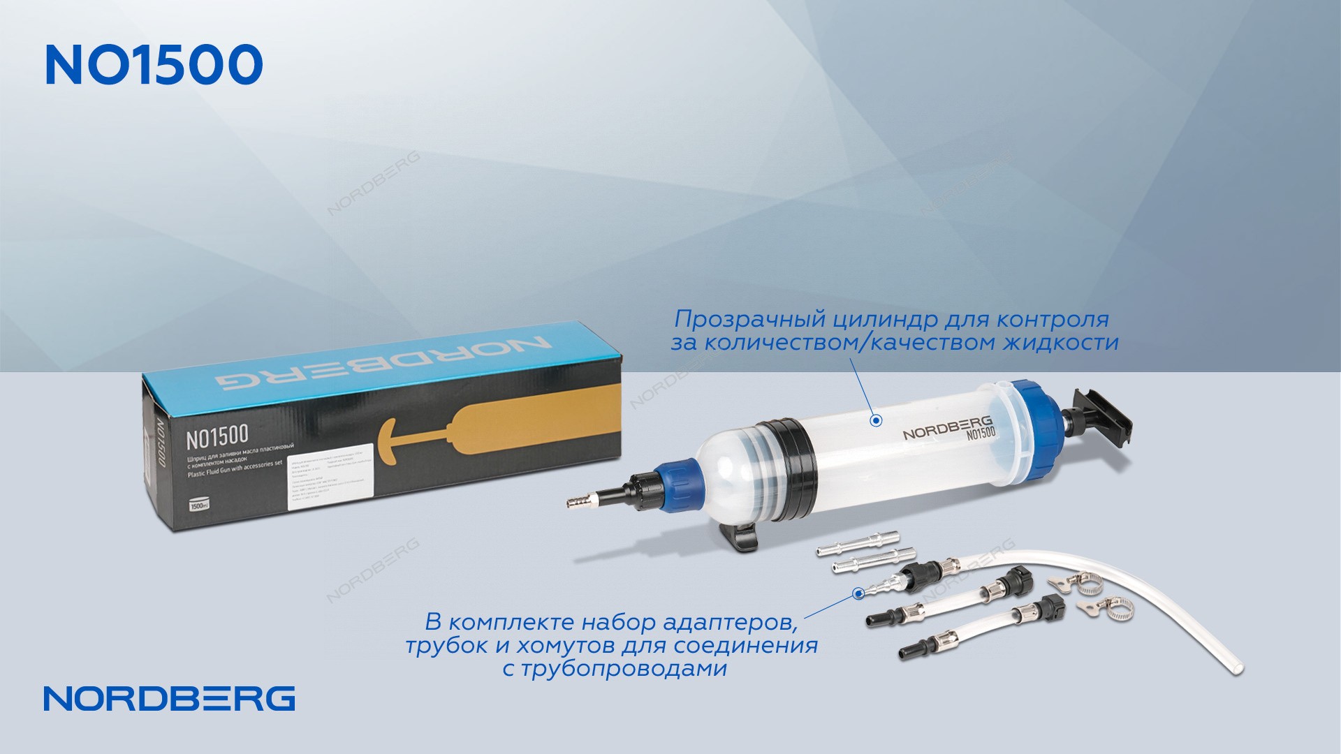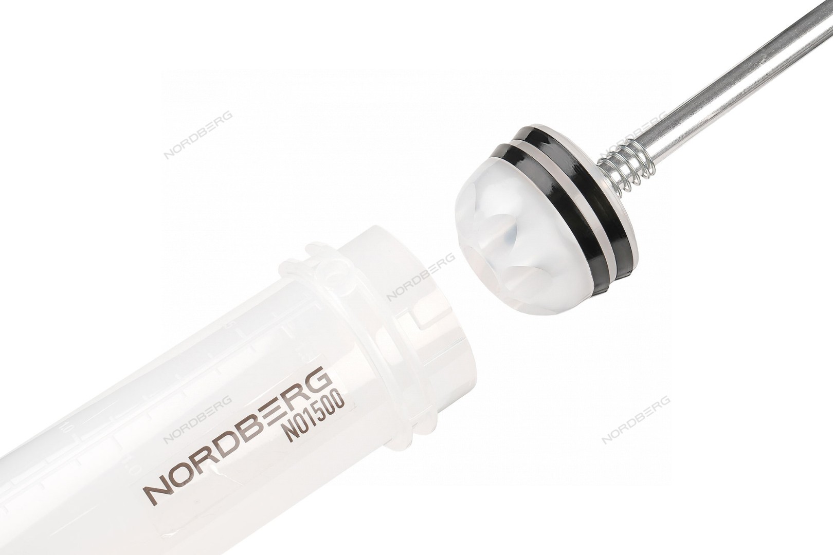Шприц для заливки масла пластиковый с комплектом насадок, 1500 мл NORDBERG NO1500
