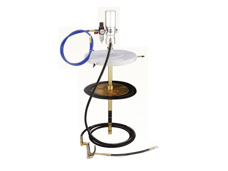 Нагнетатель густой смазки HG-77060 AE&T пневматический предназначен для подачи консистентной смазки (солидола) из стандартной бочки емкостью 50-60кг в смазываемые узлы под давлением до 300атм.