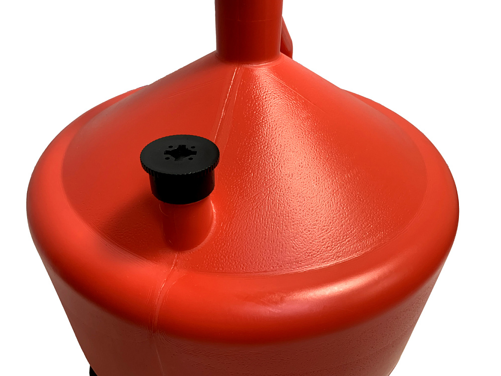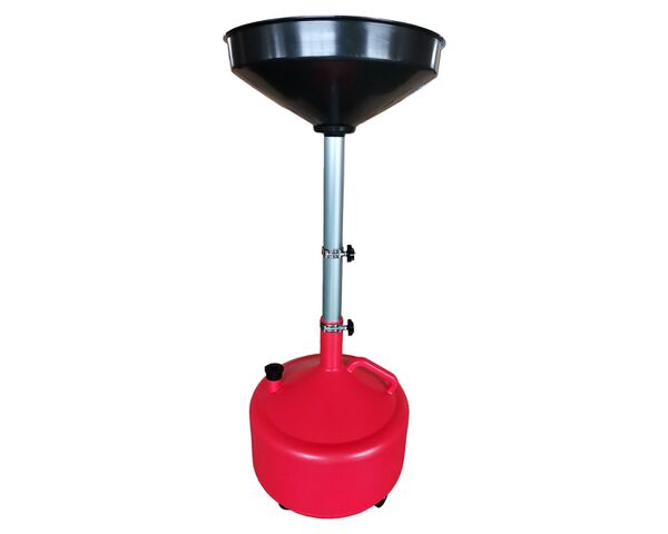 Изготовлена из плотного пластика и оснащена колесами для удобного перемещения. Маслоприемная воронка вместимостью 10 л укомплектована фильтром.