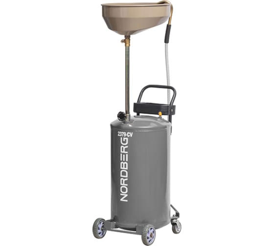 Пневматическая установка для сбора масла NORDBERG, 65 л серая 2379-CVG предназначена для удаления отработанного масла и других жидкостей из любого транспортного средства свободным сливом.