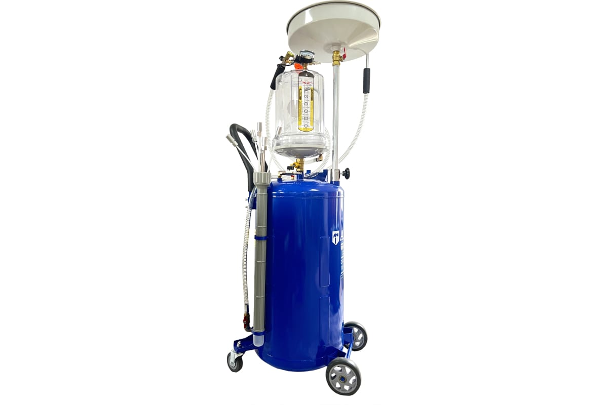 Установка замены масла AE&T 90 л, щупы+предкамера+воронка TF-6290TPG используется для замены отработанного масла через щупы или в воронку с предкамерой для визуального контроля.
