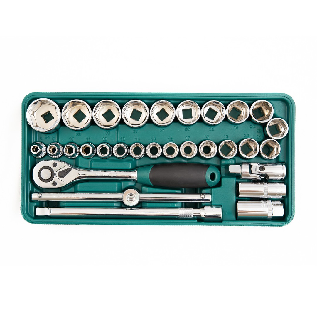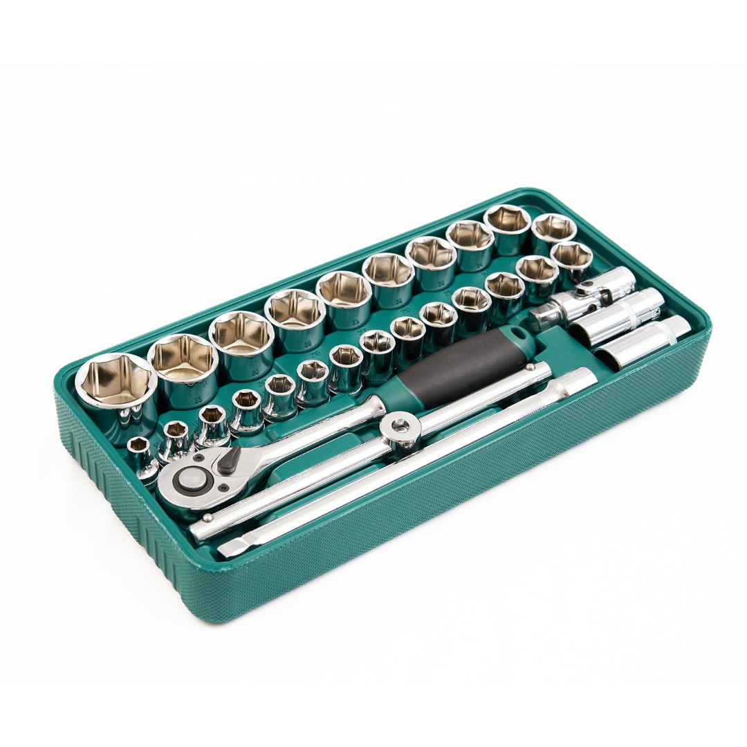 Головки торцевые 1/2", мм: 8; 9; 10; 11; 12; 13; 14; 15; 16; 17; 18; 19; 20; 21; 22; 23; 24; 25; 26; 27; 28; 30; 32; 34 - 24 шт;