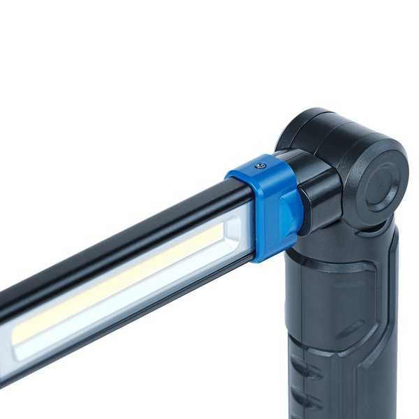 - складная конструкция (на 60° в каждую сторону от вертикали) и вращение светящей части на 180° позволяют подобрать удобный угол освещения в зависимости от рабочих условий;
