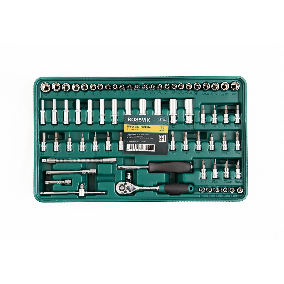 LST073 Набор инструмента ROSSVIK (головки 1/4"), ложемент, 73 предмета ROSSVIK