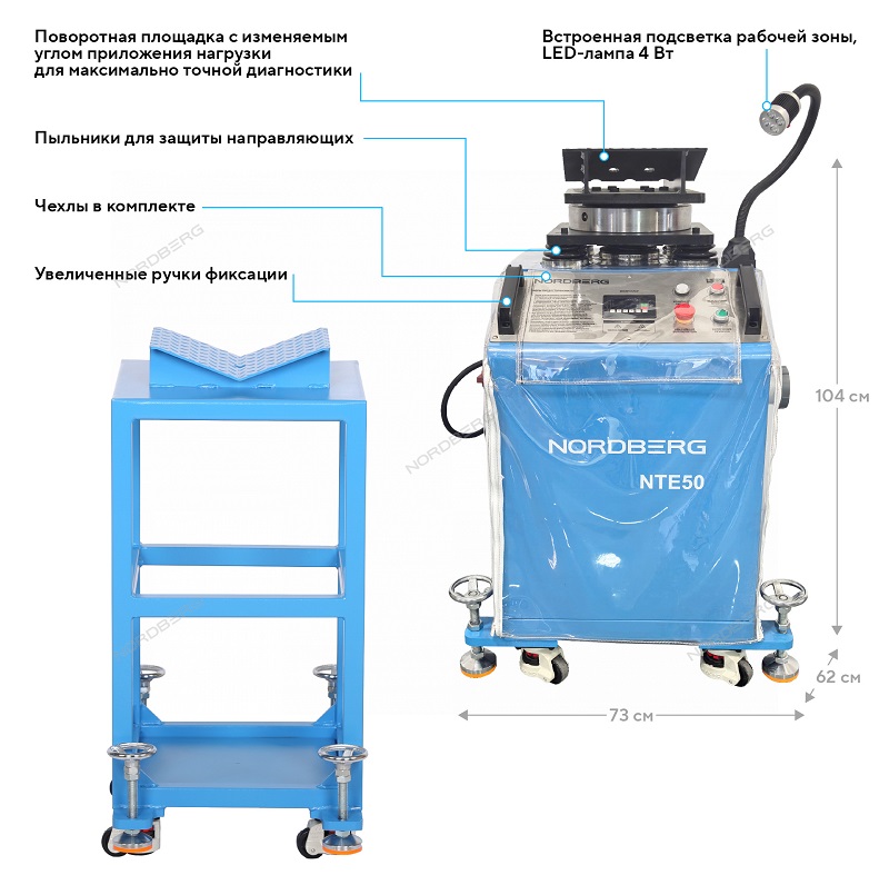 Вибростенд для диагностики подвески с поворотной площадкой и фонариком Nordberg NTE50_V3 характеристики
