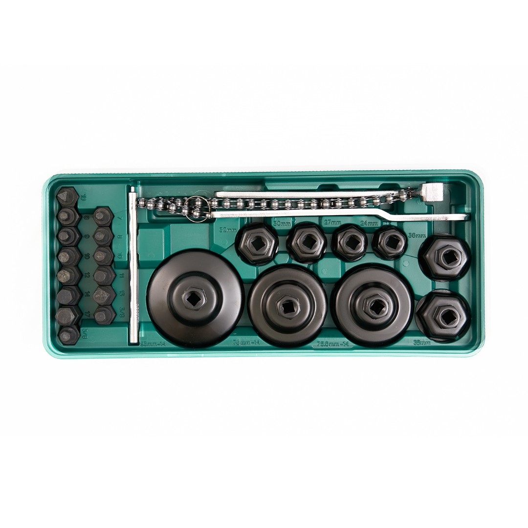 Набор LST025 состоит из съёмников чашечного типа, которые применяются на станциях технического обслуживания и автомобильных мастерских для демонтажа масляных фильтров. Набор изготовлен из высокопрочной стали, что увеличивает его износостойкость и срок эксплуатации. Поставляется в пластиковом ложементе, который надежно фиксирует элементы на своих местах, исключая их соприкосновение друг с другом, защищая от колебаний и полностью сохраняет заводской вид изделий.