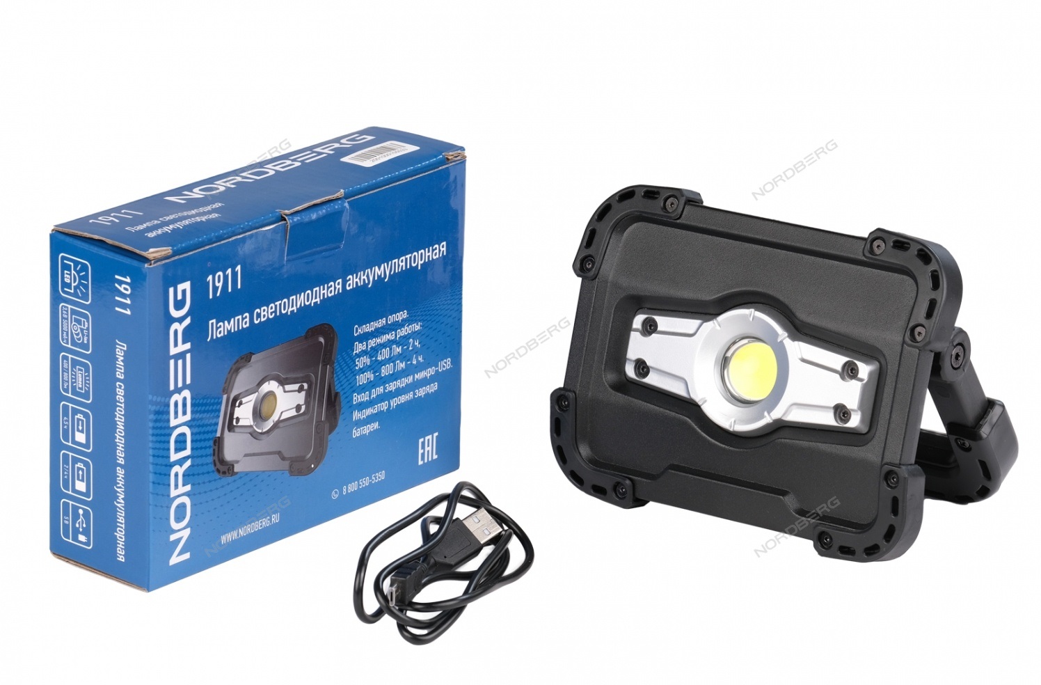 ЛАМПА светодиодная, стационарная, аккумуляторная, 10 В NORDBERG 1911 характеристики