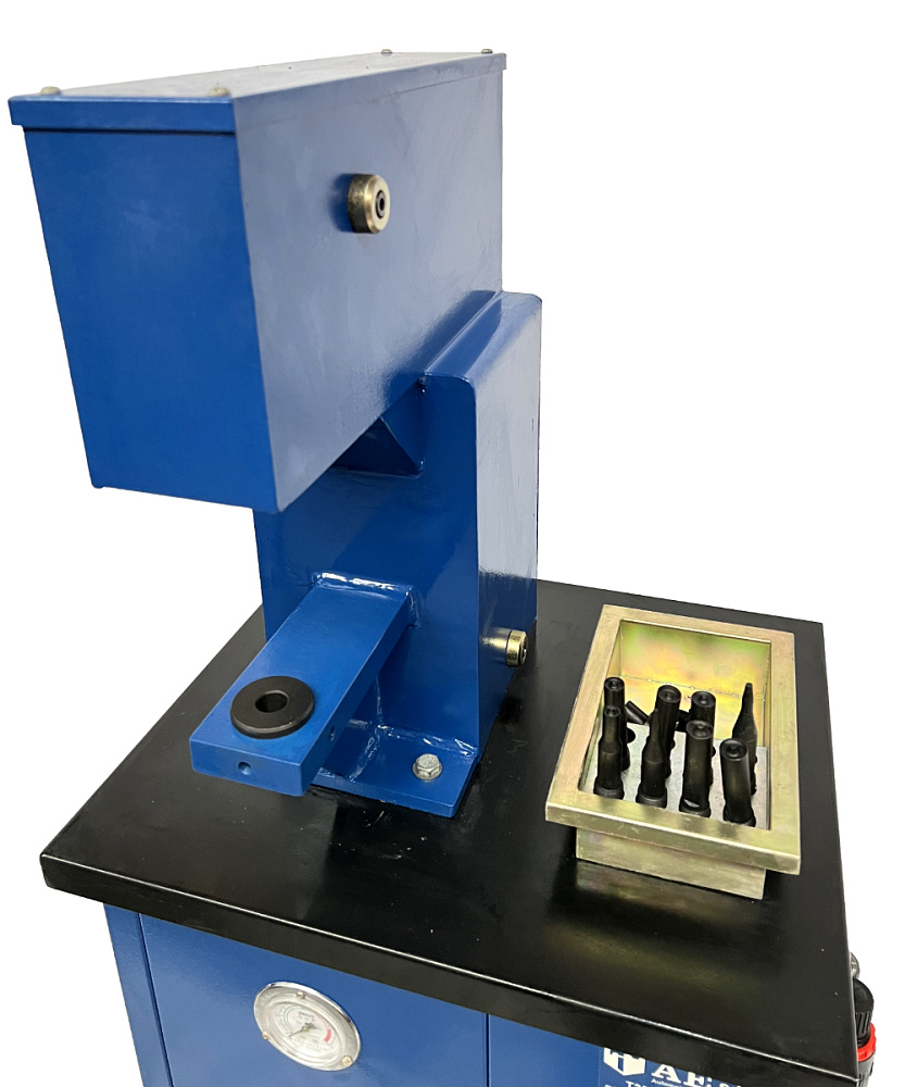 Клепальный станок используется для работы с различными видами и формами заклепок, изготовленных из меди и алюминия. Требуется подключение к компрессору. Рабочее усилие клепальный станок развивает с помощью сжатого воздуха. (давления воздуха регулируется с помощью редуктора).