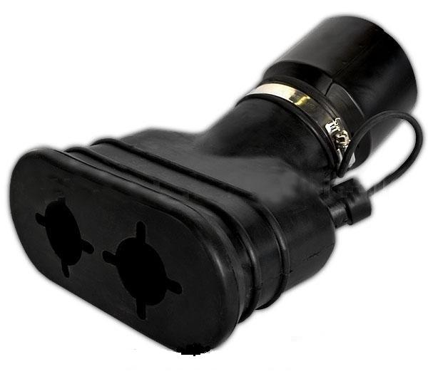 Сдвоенный неопреновый газоприемный наконечник для системы удаления выхлопных газов с патрубком для отбора проб на СO и стальным полуотводом.
