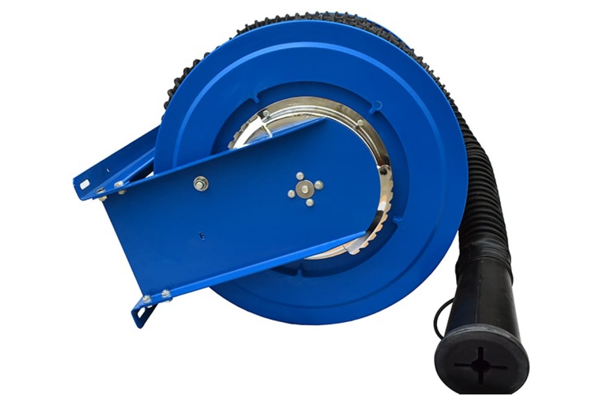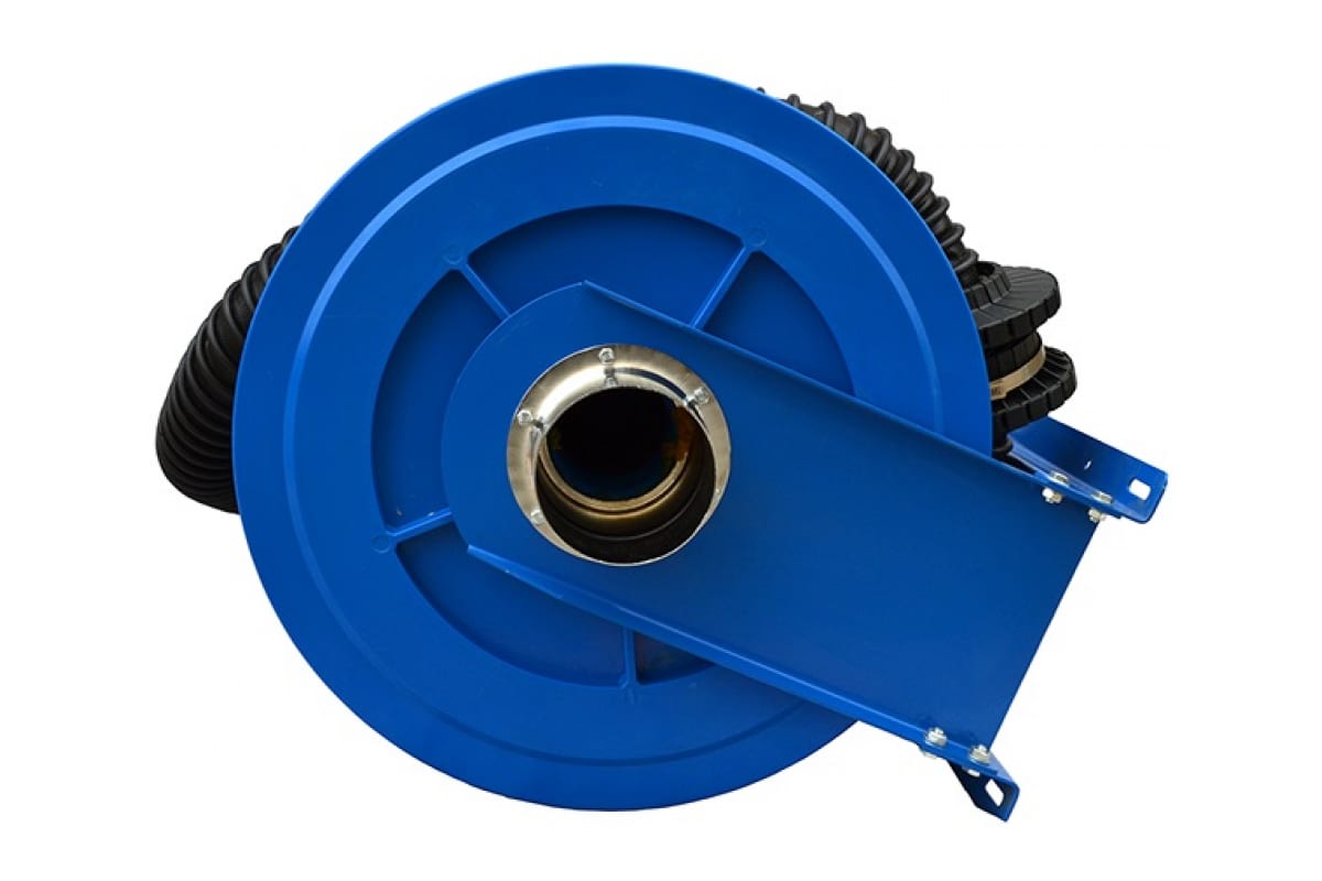 Катушка позволяет компактно и безопасно хранить шланг в то время, когда в нем нет необходимости. Имеет прочную и надежную стальную конструкцию. Крепление осуществляется к стене или потолку. Подключается к централизованной системе удаления выхлопных газов или к индивидуальному вентилятору.
