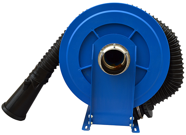 Катушка позволяет компактно и безопасно хранить шланг в то время, когда в нем нет необходимости. Имеет прочную и надежную стальную конструкцию. Крепление осуществляется к стене или потолку. Подключается к централизованной системе удаления выхлопных газов или к индивидуальному вентилятору.