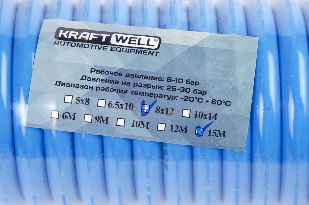 Шланг воздушный полиуретановый, спиральный D8х12 мм, 15 м KRW-HC081215 KraftWell характеристики