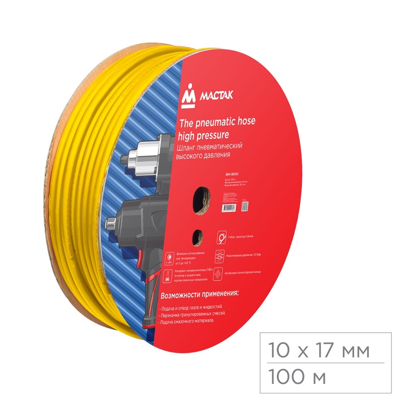Шланг пневматический 10х17 мм, 100 м, пвх композитный, усиленный мастак 684-95100 характеристики