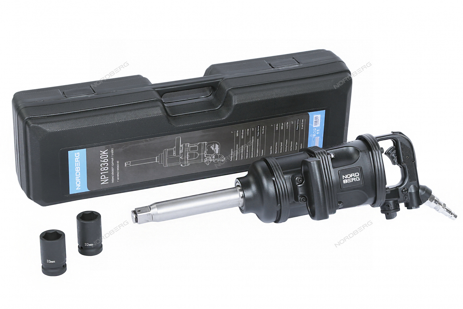 Пневмогайковерт ударный 1", 3600Нм, в кейсе с головками 32 и 33 мм NORDBERG NP18360K характеристики