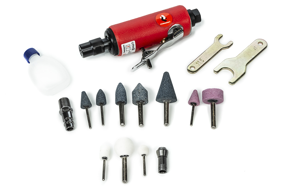 Пневмодрель с набором насадок, 22000об/мин, цанговый патрон ROSSVIK RT-1206K